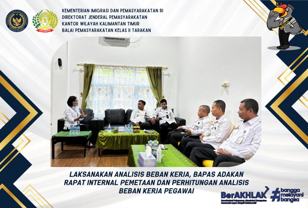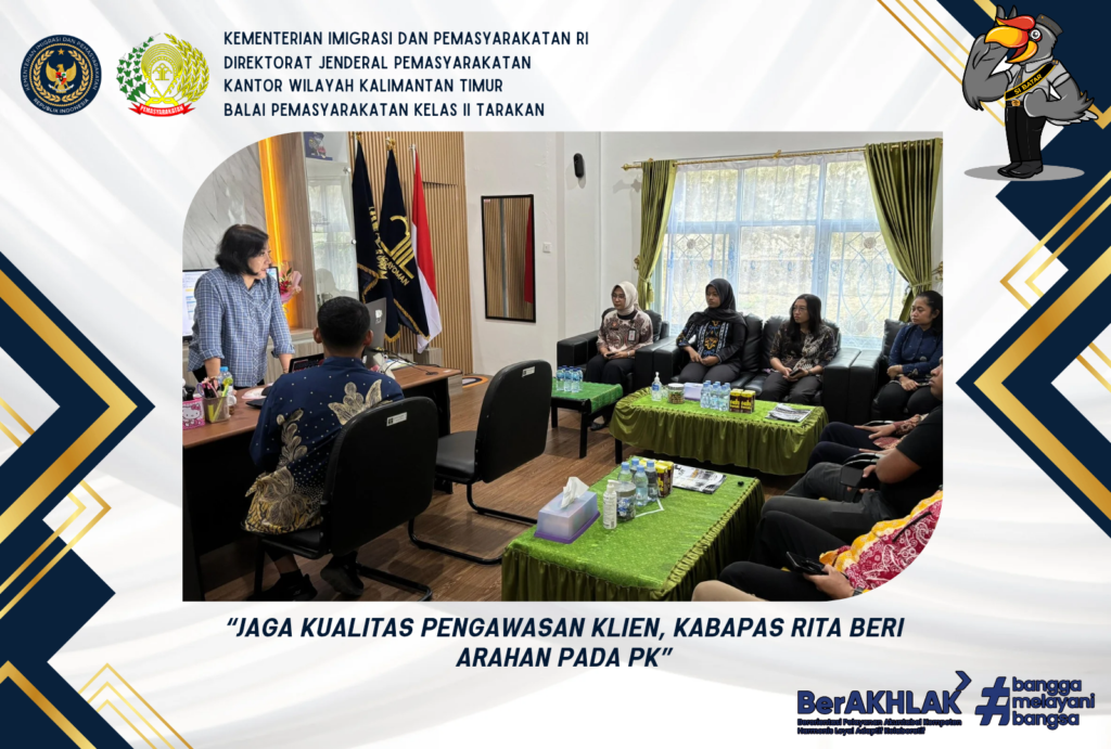 Monitor Database Klien PK, Kabapas Beri Penguatan Pengawasan dan Pembimbingan untuk PK Tarakan-Kepala Balai Pemasyarakatan Kelas II Tarakan, Rita Ribawati, beserta jajaran baru saja melaksanakan Rapat Internal Pemetaan dan Perhitungan Analisis Beban Kerja Pegawai pada Senin (06/01/2025). Kegiatan juga diikuti oleh pejabat struktural dari Kaur Tata Usaha, Arusmen Simbolon, Kasubsi Klien Dewasa, Dwi Prasetio, Kepegawaian, …