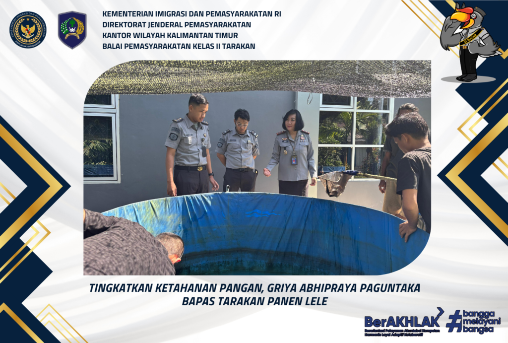 Tingkatkan Ketahanan Pangan, Griya Abhipraya Paguntaka Bapas Tarakan Panen Lele Tarakan – Griya Abhipraya (GA) Paguntaka Bapas Tarakan baru saja memanen lele pada Senin (05/05/2025). Salah satu program kemandirian Griya Abhipraya oleh Bapas Tarakan ini merupakan bentuk kerja sama dengan Kelompok Masyarakat Peduli Pemasyarakatan (Pokmas Lipas) Rizky Mina Utama. Pada kesempatan ini, hadir memanen langsung …
