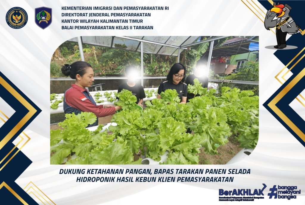 Dukung Ketahanan Pangan, Bapas Tarakan Panen Selada Hidroponik Hasil Kebun Klien Pemasyarakatan Tarakan – Dalam rangka mendukung program akselerasi program Menteri Imigrasi dan Pemasyarakatan melalui ketahanan pangan, Bapas Tarakan laksanakan l panen selada hidroponik pada Jumat (20/06/2025). Turut memanen langsung Kepala Bapas Tarakan, Rita Ribawati bersama Koordinator Selada Hidroponik, Elisabeth Dian dan Anak Binaan Griya …