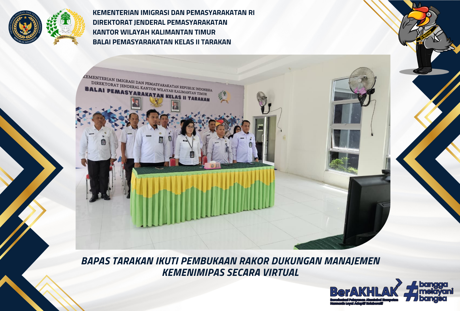 Bapas Tarakan Ikuti Pembukaan Rakor Dukungan Manajemen Kemenimipas secara Virtual