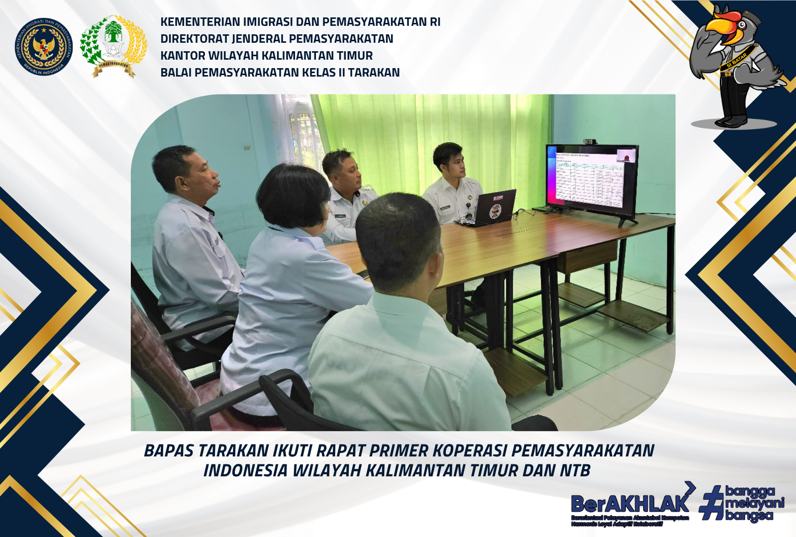 Tarakan-Ketua Koperasi Griya Abhipraya Paguntaka Balai Pemasyarakatan Kelas II Tarakan, Elvianto, beserta Kabapas Tarakan, Rita Ribawati, dan pengurus koperasi baru saja mengikuti kegiatan zoom Rapat Primer Koperasi Pemasyarakatan Indonesia Wilayah Kalimantan Timur dan NTB, pada Rabu (06/08/2025). Kegiatan bertujuan untuk menyampaikan laporan terkait operasional dan pertumbuhan koperasi serta penyampaian struktur organisasi koperasi Direktorat Jenderal Pemasyarakatan.
