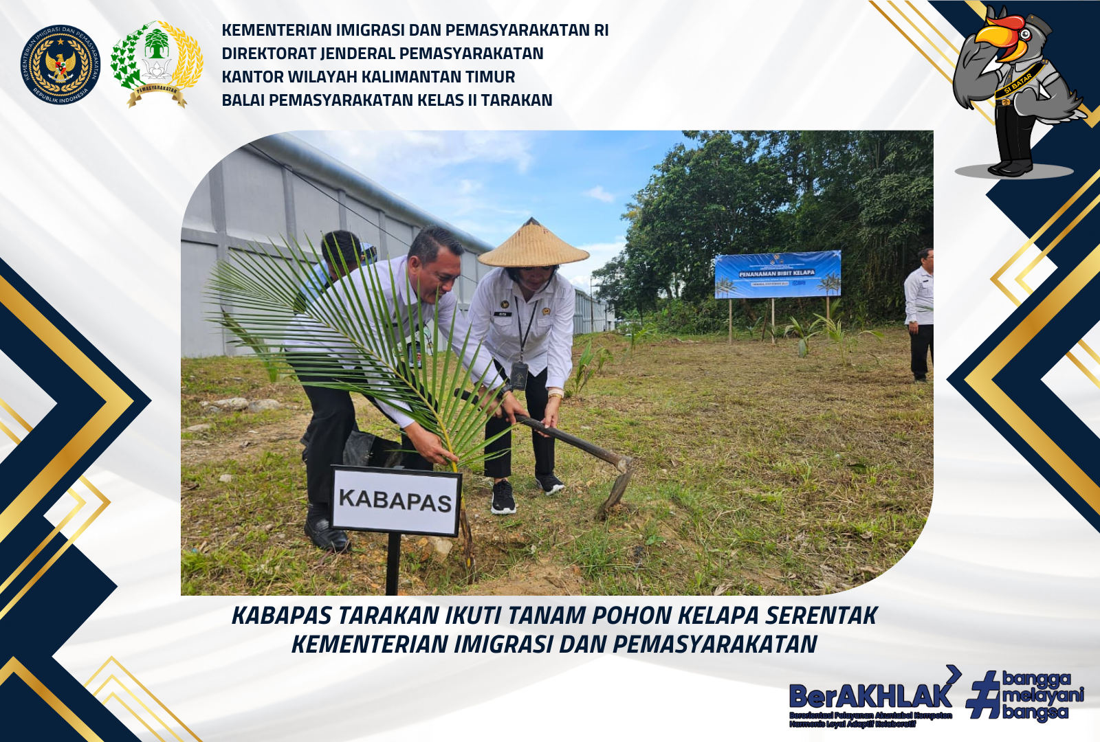 Tarakan-Kepala Balai Pemasyarakatan Kelas II Tarakan, Rita Ribawati, bersama Kepala Lembaga Pemasyarakatan Kelas IIA Tarakan, Jupri, dan Kepala Imigrasi Tarakan Sungep, baru saja melaksanakan penanaman pohon kelapa bersama di lingkungan Lapas Kelas II Tarakan dan serentak di Kementerian Imigrasi dan Pemasyarakatan, pada Selasa (09/09/2025).