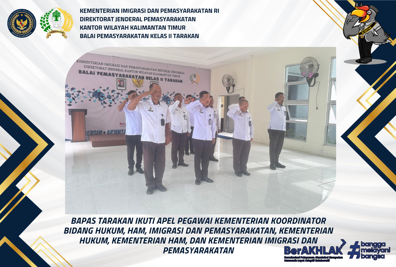 Bapas Tarakan Ikuti Apel Pegawai Kementerian Koordinator Bidang Hukum, HAM, Imigrasi dan Pemasyarakatan, Kementerian Hukum, Kementerian HAM, dan Kementerian Imigrasi dan Pemasyarakatan
