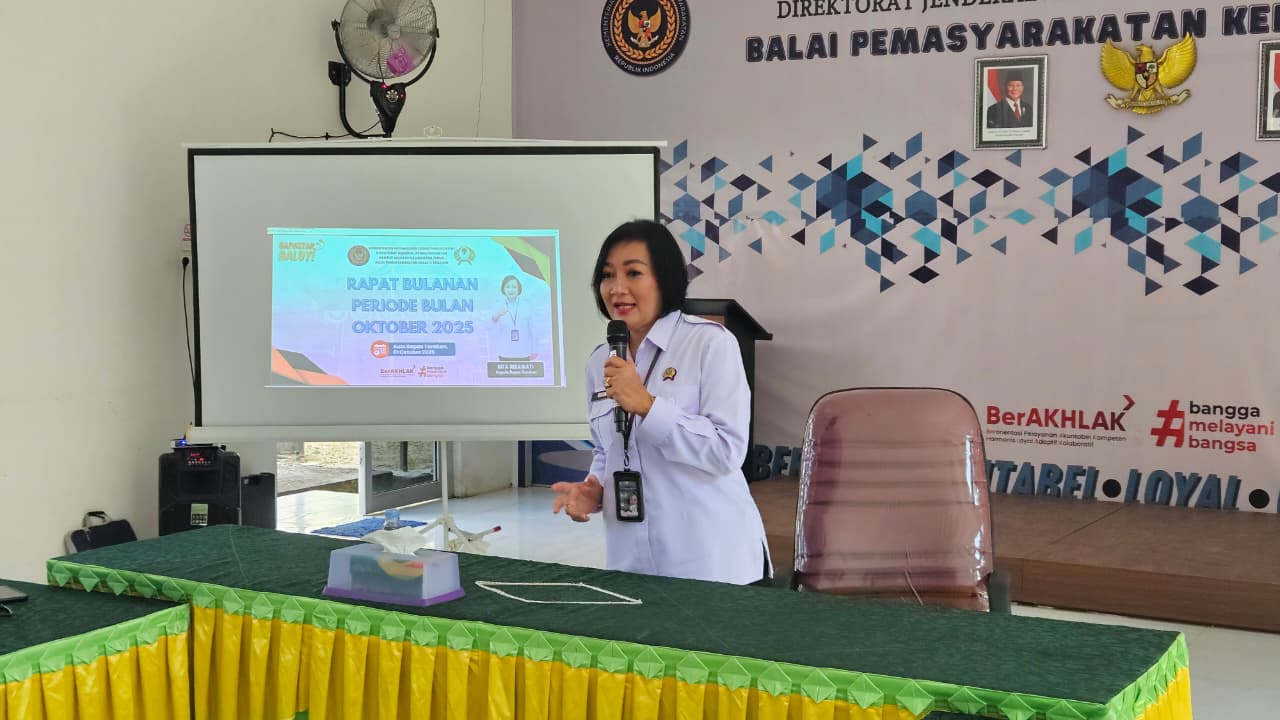 Tarakan-Kepala Balai Pemasyarakatan Kelas II Tarakan, Rita Ribawati, beserta seluruh Pejabat Struktural, pegawai JFU, JFT, baru saja melaksanakan rapat bulan Oktober pada Senin (01/10/2025). Kegiatan membahas evaluasi kinerja serta rencana program untuk bulan Oktober 2025.