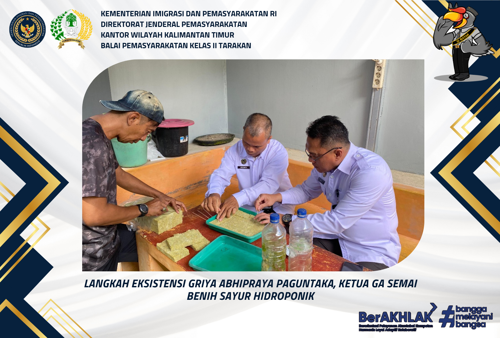 Tarakan-Kasubsi Bimbingan Klien Anak sekaligus ketua Griya Abhipraya Bapas Kelas II Tarakan, Eko Subagio, didampingi oleh Kaur Tata Usaha, Arusmen Simbolon baru saja ikut serta dalam pembibitan sayur hidroponik pada Selasa (04/11/2025). Adapun Keduanya bersama Anak yang menjalani Pembinaan di Griya Abhipraya menyiapkan benih sayur selada untuk dijadikan bibit hidroponik.